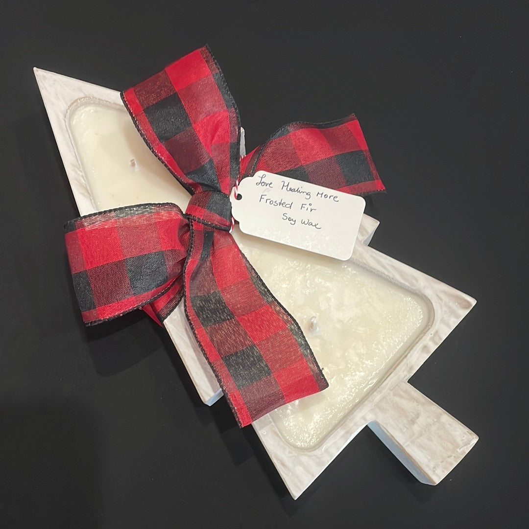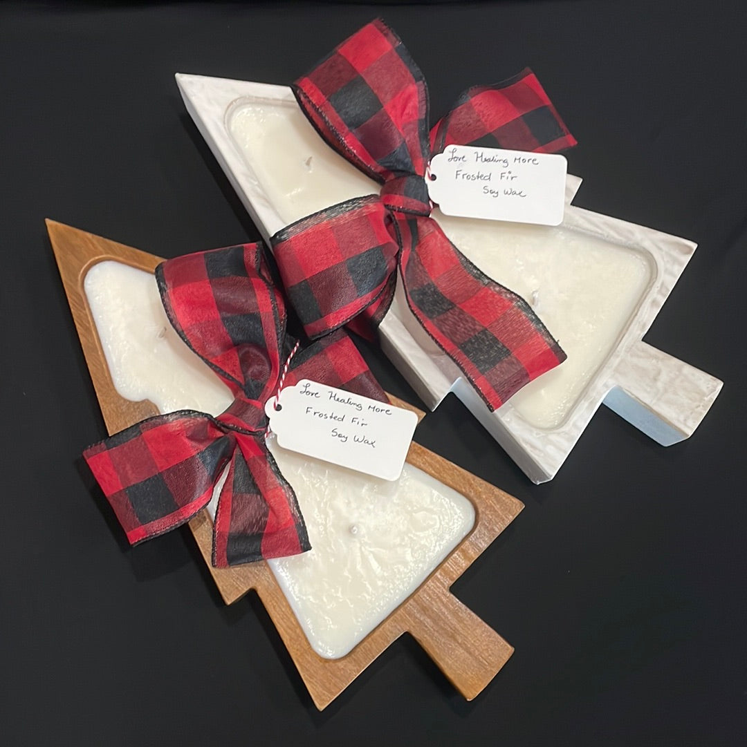 Handmade Wooden Large Tree Candle with Frosted Fir Fragrance