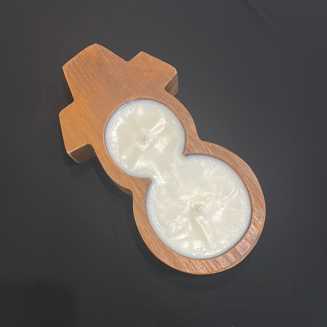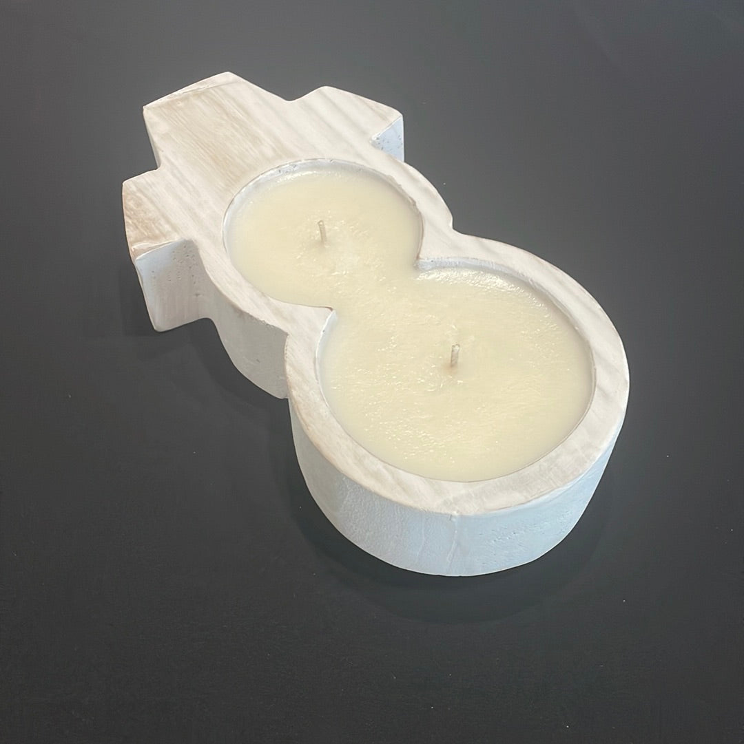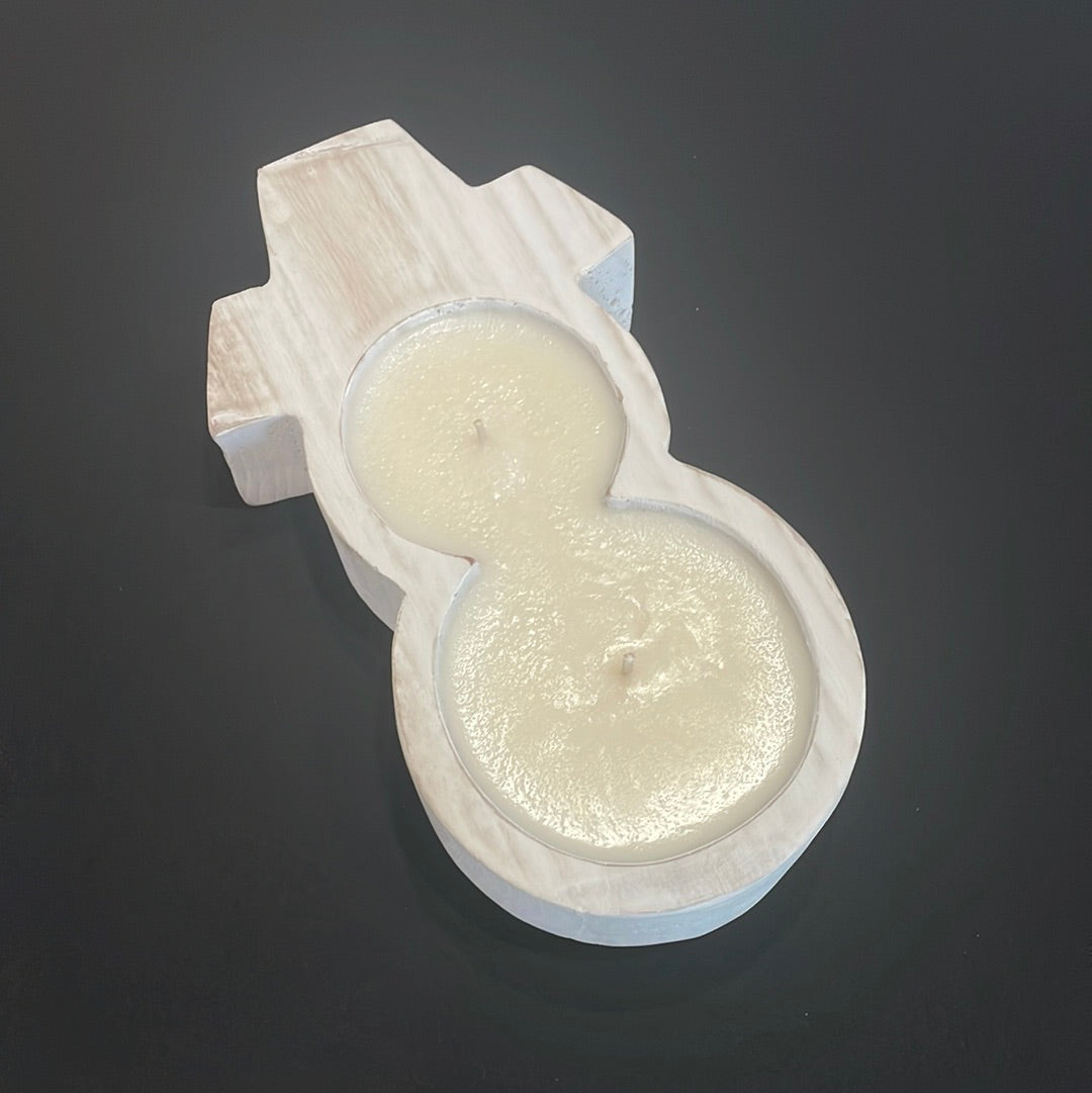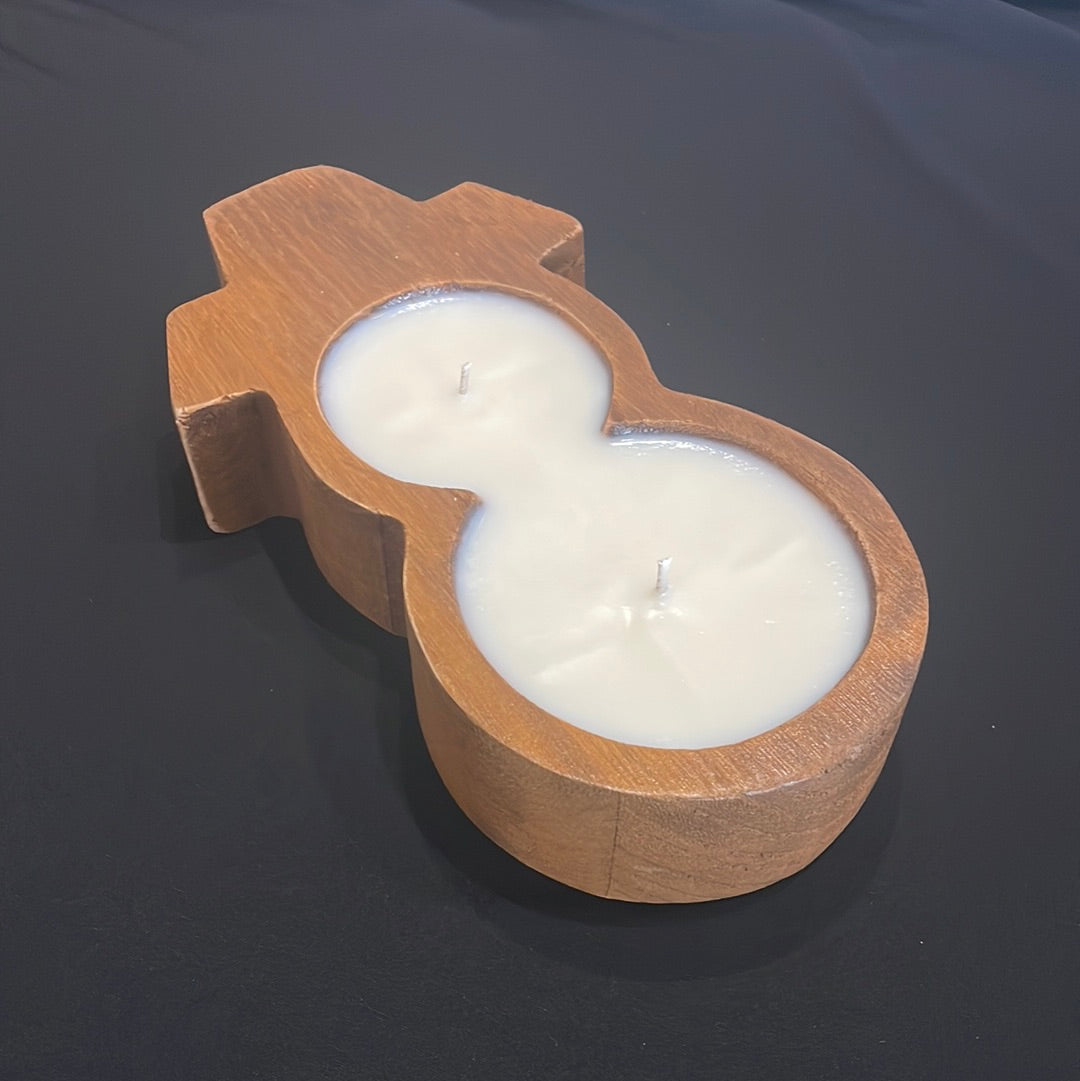 Handmade Wooden Snowman Bowl Candle with Woodland Snow Fragrance